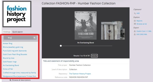 Click on “Humber Fashion Collection” then use the “Quick Search” feature to search the database.