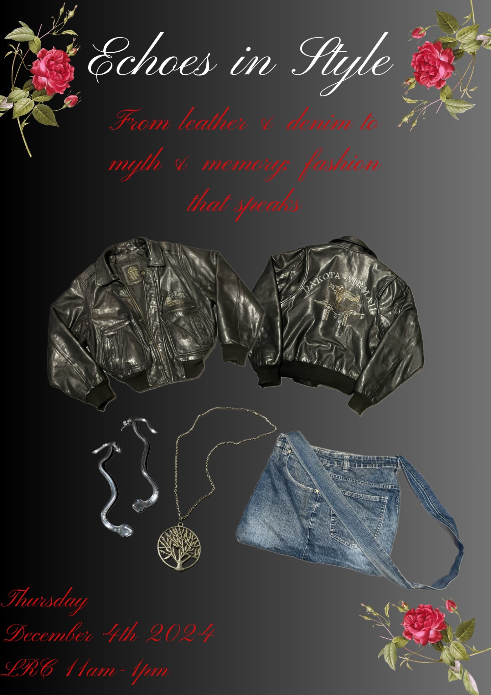 Echoes in Style” is a collection that brings together personal stories and meaningful designs. It features Dakota Airmail leather bomber jacket that sparked a passion for thrifting and a handmade denim bag which marked the start of an interest in fashion. It includes a Tree of Life necklace which symbolizes friendship and a pair of snake earrings which reflect the duality of protection and destruction in Turkic mythology. Each piece tells a unique story blending personal associations with cultural heritage in a stylish way.
