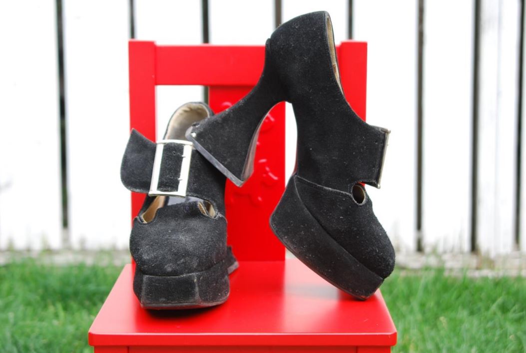 But, rather than lament their loss, and my youth, I do want to celebrate this shoe and its design. As an object, I miss them as well because they were truly unique, such an interesting design. So architectural. Not only did I love their witch-like charm, with their pilgrim buckle, but I felt like I was also standing on major architectural feats (excuse the pun). And I also loved how they seemed to bridge time by appearing almost Victorian-like, while also being modern with its platform sole. Such futuristic vintage if I could coin that. It would only take me doing my dissertation on stiletto heels for me to realize that the platform of those shoes also beckoned one other object in time: the Renaissance chopine. So my Fluevog’s were really a kind of timeless shoe. I wish I could only find the time to wear them!